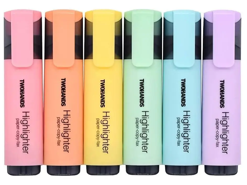 Vibrant, balanced colors that enhance readability: The colors used in TWOHANDS highlighters are designed to be bright yet comfortable for the eyes. They emphasize important text without overpowering or obscuring what is written underneath. Each shade is carefully balanced to maintain legibility on printed documents, textbooks, and handwritten notes. The color quality remains stable over time, resisting fading even with frequent use. This makes notes and documents easy to review days or months later. The result is clearer organization and faster information recall.